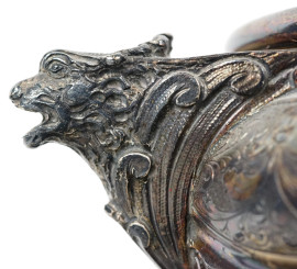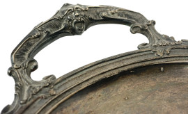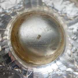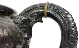 Servizio da thè e caffè in argento sbalzato e cesellato, inizi XX secolo, composto da teiera, caffettiera, zuccheriera, lattiera e vassoio, h max cm 19, peso gr. 5210
