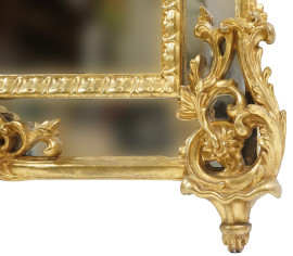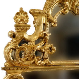Specchiera in legno intagliato e dorato, XX secolo, h cm 170x95
