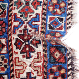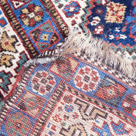 Tappeto orientale, cm 180x147, (difetti, parti consunte)