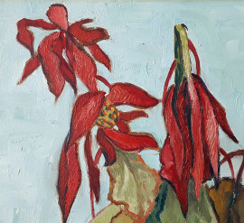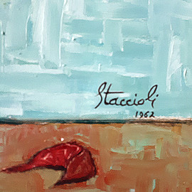 Vaso con fiori, olio su tela, cm 70x50, firmato e datato Staccioli 1967