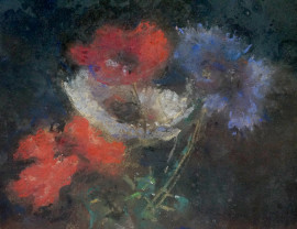 Vaso con fiori, tecnica mista su catoncino, siglato, cm 29x18, entro cornice