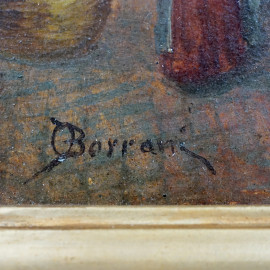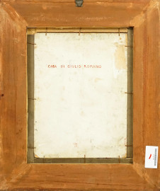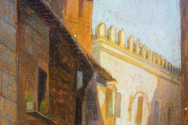 Abitazioni medievali e Casa di Giulio Romano in Via Macel de Corvi, olio su tavola, firmato, cm 32,5x24, entro cornice