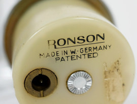 Accendino da tavolo Ronson anni 70 in cristallo e metallo argentato, cm h 7,5x6,5x9,5
