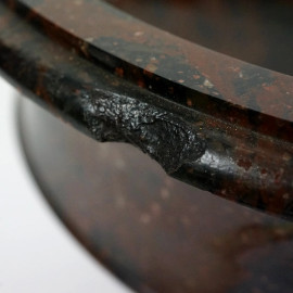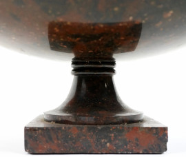 Alzata in marmo, bordo e coppa modanati, piedi quadrangolare, XX secolo, cm h 25,5x38,5, (difetti)