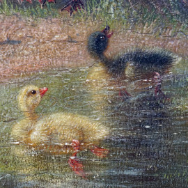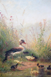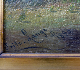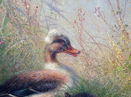 Anatre in uno stagno, olio su tavola, firmato Fritz Lange, cm 33x24, entro cornice