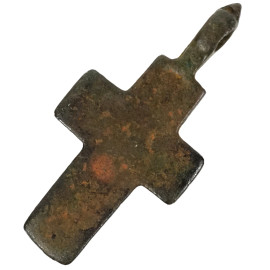 Antico ciondolo a forma di croce, in metallo brunito, cm 4.5x2