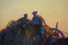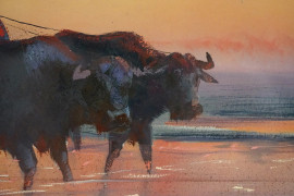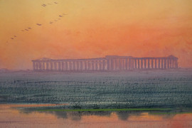 Artista del XX secolo, Paestum, acquarello su carta, cm 54x133, entro cornice