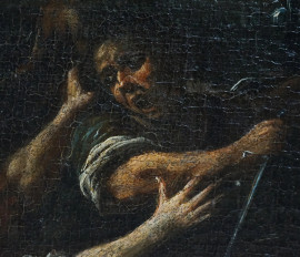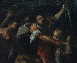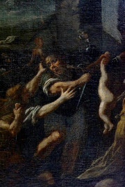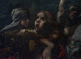 Attr. a Scipione Compagno (Napoli, 1624 circa- post 1680), Strage degli Innocenti, olio su tela, cm 94x123, entro cornice