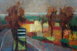 Bivio ad Acilia, olio su tela, cm 30,5x40,5, firmato La Carruba, entro cornice