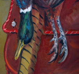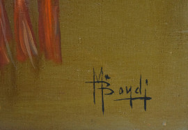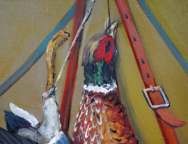 Cacciaggione, olio su tela, cm 70x50, firmato M. Bondi