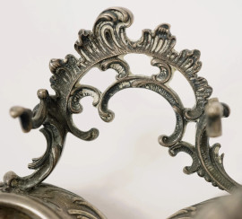 Calamaio in metallo argentato con ampolla in vetro, misure ingombro cm 15 (mancanze)