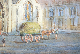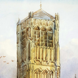 Cattedrale di San Martino a Ypres, acquerello su carta, XIX-XX secolo, firmato in basso a destra, cm 26,5x38, entro cornice