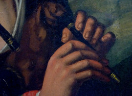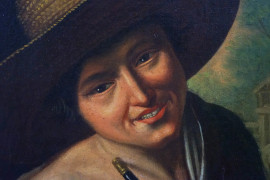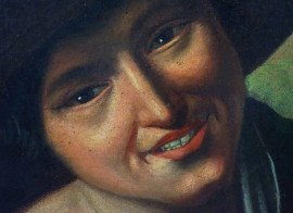 Cerchia di Peter Wtewael (Utrecht, 1596-1660), Pastore con cornamusa, olio su tela, cm 85x73, entro cornice