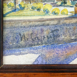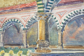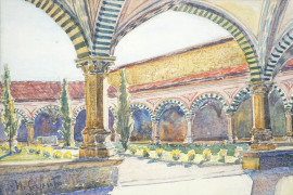 Chiostro, acquerello su carta, firmato, cm 19x29, entro cornice