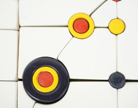 Cinetico, anni '60, composizione in legno dipinto, cm 35x36, (difetti)