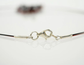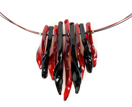 Collana con pendente in vetro rosso e nero, chiusura in argento, cm 44,5