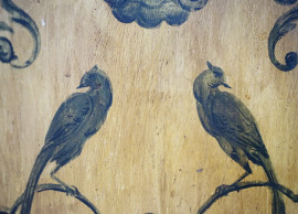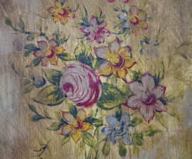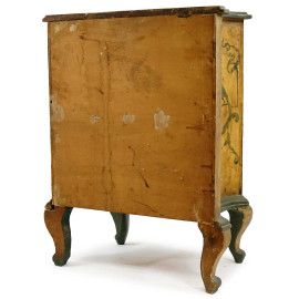 Comodino in legno laccato con decori floreali, XX secolo, ad uno sportello, quattro piedi mossi, cm h 76,5x58x37,7