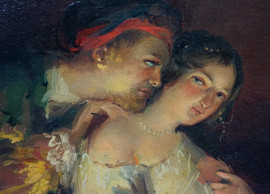 Coppia di amanti, fine XIX secolo, olio su tela, cm 30,3x24,3, entro cornice
