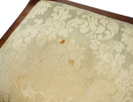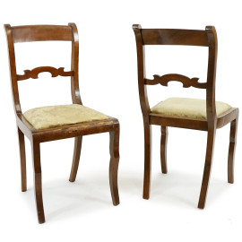 Coppia di sedie in noce, XIX secolo, cartelle a giorno, sedute imbottite, h 87