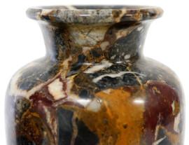 Coppia di vasi in marmo breccia, metà XX secolo, corpo a balaustro, cm h 20,5