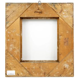 Cornice in legno e stucco dorato, XX secolo, ingombro cm 53,5x48,5, battente cm 33x28