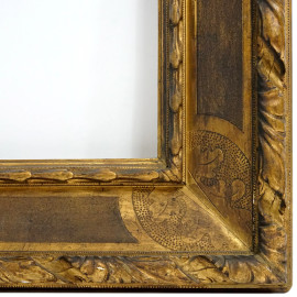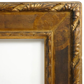 Cornice in legno intagliato e dorato, XX secolo, ingombro cm 83.5x109, luce cm 57x82.5, (difetti)