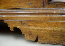 Credenza in noce del XVIII secolo, fronte a quattro sportelli pannellati, cm h 98x264x49 circa, (difetti)