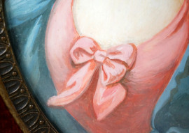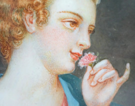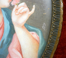 Dama con garofano, miniatura, cm 8,5x6,3, entro cornice