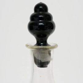Due bottiglie in vetro trasparente e nero, anni 20'-30', cm h 32,5