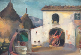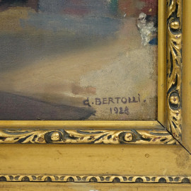 Esterno di casolare, olio su tela, cm 49x63, firmato e datato, entro cornice