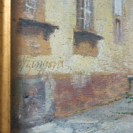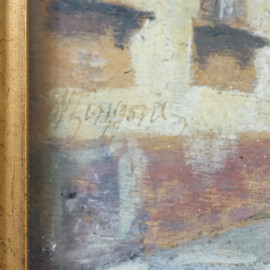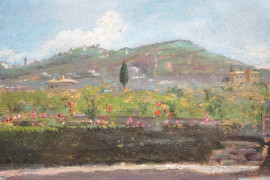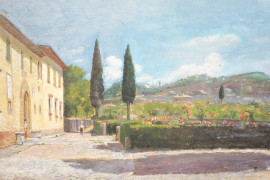Esterno di villa, olio su tavoletta, firmato A. Zingoni, cm 13x24,5, entro cornice
