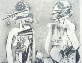Figure, matita su carta, XX secolo, cm 27,8x22, entro cornice