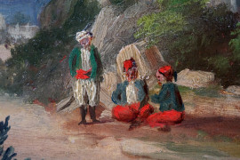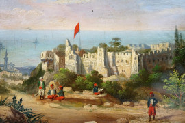 Fortezza di Trebisonda, olio su zinco, cm 25,5x35,5, siglato e datato, entro cornice