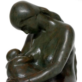 Giuseppe Enrini (Milano 1899 – 1962), Maternità, scultura in bronzo, base in marmo, altezza cm 22,5