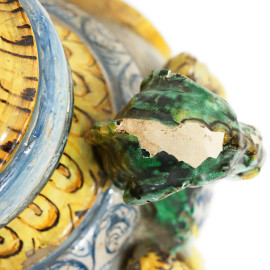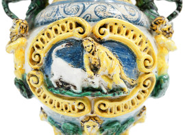 Grande vaso biansato Napoli, inizi XIX secolo, in maiolica policroma a gran fuoco, (difetti e restauri)