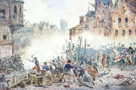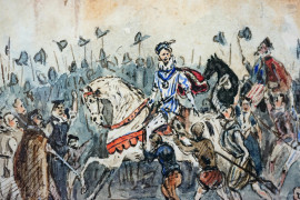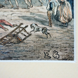 La rivolta, acquerello su carta, siglato, cm 14x23, entro cornice