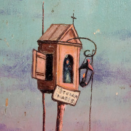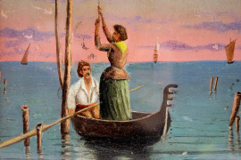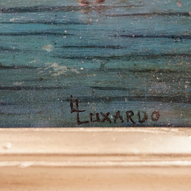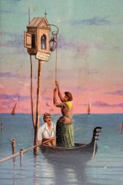 Laguna veneta al tramonto, olio su compensato, firmato, cm 26x19,5, entro cornice