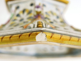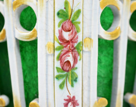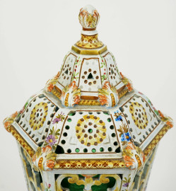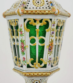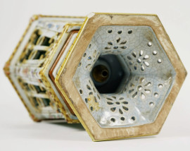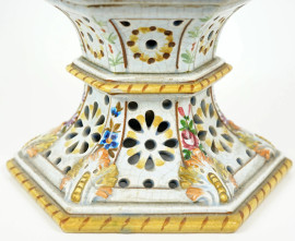 Lampada in ceramica policroma traforata con decori floreali, XX secolo, altezza cm 44