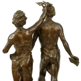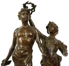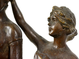 L'industrie, gruppo scultoreo in metallo brunito, cm h 38, Francia, XX secolo, base in legno
