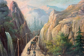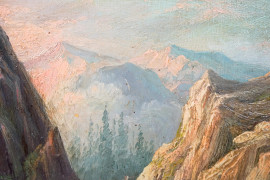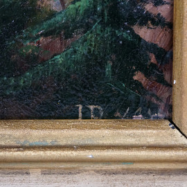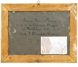 Lo stretto di Djuma- Bagar sul Balkano, olio su zinco, cm 25,5x35,5, mogrammato e datato UR anno 1877, entro cornice