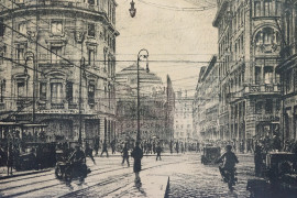 Via del Tritone a Roma1927, stampa su carta, cm 58,5x43, entro cornice