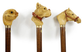 Lotto composto da 10 bastoni da passeggio realizzati in materiali diversi, lunghezza max cm 94,5, (difetti)