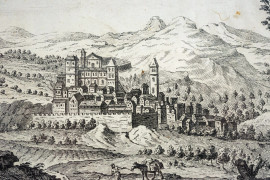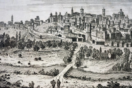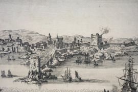 Lotto composto da 12 stampe rappresentanti vedute di città, di Salmon Thomas (1679 –1767), XVIII secolo, cm 11x16,5 circa, entro cornice