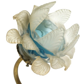 Lotto composto da due lampade da tavolo ed una applique in metallo dorato e vetro, h max cm 52 circa