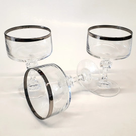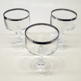 Lotto composto da tre bicchieri a calice in cristallo e cromo