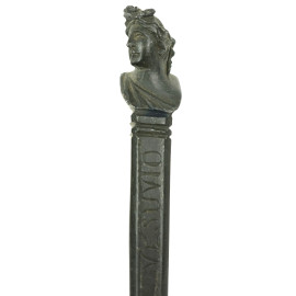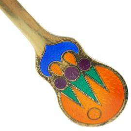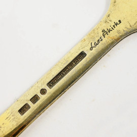 Lotto composto da un cucchiaio natalizio Michelsen 1979 di Lars Akirke in argento dorato e un pennino in metallo argentato e pietra lavica scolpita, misura max 16,4