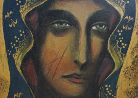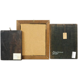 Lotto composto da un dipinto raffigurante Cristo, olio su tela, XIX secolo; un'icona su tavola raffigurante la Madonna di Czestochowa, XX secolo; e un'icona su tavola raffigurante San Giorgio, XX secolo, misura max cm 32x25