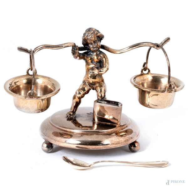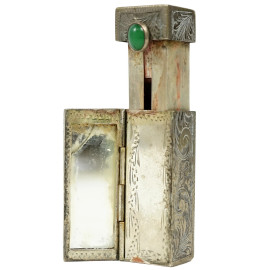 Lotto composto da un porta rossetto in argento cesellato con specchietto e pietra in pasta di vetro verde e 6 prendi stuzzichini in argento e pietre diverse, misura max cm 7,3