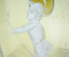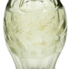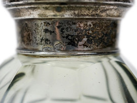 Lotto composto da una bottiglia in cristallo co finitura in argento ed una brocca in vetro verde, manifatture diverse, XX secolo, h max cm 27, (difetti)