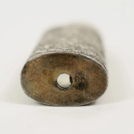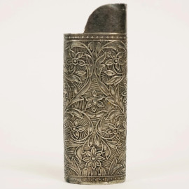 Lotto composto da una spilla da bavero in argento filigranato a forma di fiore, un porta accendino in argento e una cornicetta in argento, misura max cm 16, peso gr. 64 (difetti)
